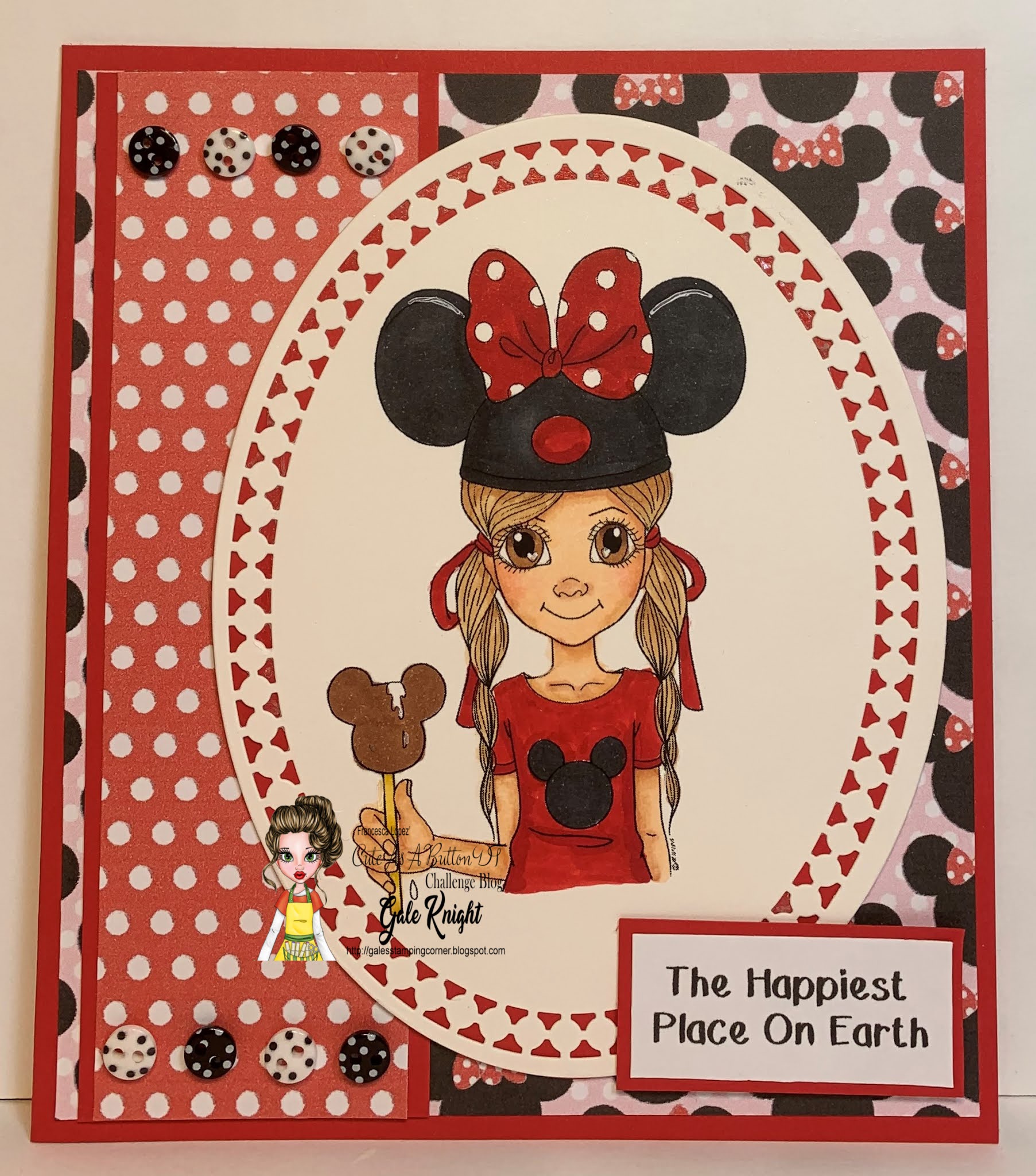 This reminds me of my great-granddaughter who just got back from a trip to Disney World. Great job of coloring and including dots for our challenge, Gale. Thanks for sharing your card with us at Just Us Girls.