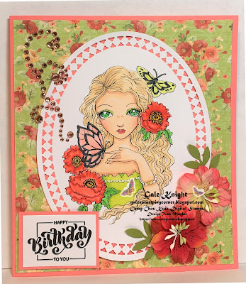 Love the coral and green colour combo on this pretty card, Gale! Fab colouring and a real feminine feel...